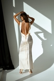 Вражаюча сукня ніжного відтінку виконана з шовку атласу .Неймовірно розкішна спинка ,яка не залишить оточуючих байдужими .