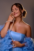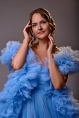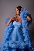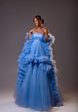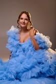 Сукня виконана з євро сітки на підкладці. Ліф сукні з внутрішніми кісточками та чашками пуш-ап, які розраховані до52 розміру. По грудях розташована декоративна драпіровка. По низу хорс, застібка по спинці на шнурівку та замок до талії.