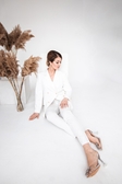Цей білий костюм - втілення стилю та смаку. Приталені брюки підкреслять вашу фігуру, додаючи елегантності та жіночності, тоді як оверсайз піджак додасть образу модного та сучасного вигляду. Цей конtrast між приталеними брюками і оверсайз піджаком створює цікавий і стильний образ, ідеальний для будь-яких випадків, від офісних зустрічей до вечірніх виходів.