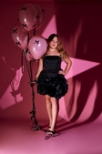 Елегантна сукня для дівчаток віком від 10 до 18 років в чорному кольорі – ідеальний вибір для урочистих подій. Довжина передньої частини – 26 см, а спідничка від талії – 40 см, що створює гармонійний та елегантний силует. Завдяки замочку та корсетній стрічці, розмір талії і грудей можна легко регулювати для ідеальної посадки. Сукня без пушапу та бюст’є, підкреслює природність і комфорт. Ця модель створена для тих, хто хоче виглядати вишукано та почуватися впевнено в будь-який момент.