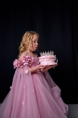 Ця елегантна корона, прикрашена розкішним камінням, стане чудовим доповненням до вашої фотосесії або використання для оздоблення торта на святі. Її діаметр 12 см, що робить її ідеальною для малих або середніх композицій.