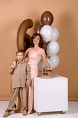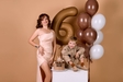 Розкішна сукня з прокатного атласу в насиченому бежевому кольорі, створена для незабутніх моментів. Елегантний симетричний крій із розрізом на ніжці додає сукні шарму та привабливості. Спинка оснащена акуратною застібкою-блискавкою, а корсетне шнурування забезпечує ідеальну посадку та підкреслює силует. Подвійний push-up акцентує зону декольте, роблячи образ ще більш виразним. Доступна для прокату у розмірах M–L.