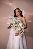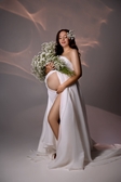 Елегантна сукня для майбутніх мам з відкритою спиною, що вражає своєю ніжністю та жіночністю. Замочок на спинці та шнурівочка дозволяють корегувати розмір, забезпечуючи комфорт та ідеальне облягання. Довжина максі надає елегантності, а напівпрозора тканина з органзи білого відтінку додає ніжності та романтики. Ця сукня стане чудовим вибором для будь якої зйомки .