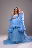 Сукня виконана з євро сітки на підкладці. Ліф сукні з внутрішніми кісточками та чашками пуш-ап, які розраховані до 42 розміру. По грудях розташована декоративна драпіровка. По низу хорс, застібка по спинці на шнурівку та замок до талії.
