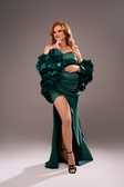 Комплект - елегантна атласна сукня вражає своєю вишуканістю та жіночністю. З розрізом на правій ніжці, вона надає додаткового шарму та виразності вашому образу. Довжина від талії 187см. Виготовлена з якісного атласу , вона підкреслює вашу жіночність. Без рукавчиків та з оголеною спиною, вона створена для того, щоб ви виглядали захопливо та чарівно. Довжину шлейфа можна корегувати- накидка Green Roses. Цей унікальний панюар вражає з першого погляду: величезні квіти, дбайливо створені вручну, розміщені на спинці та рукавах, створюючи враження, ніби ви розквітли самі. Універсальний розмір ідеально сідає на будь-який животик.Це не просто вбрання — це настрій, образ, емоція