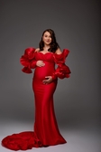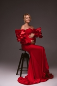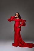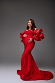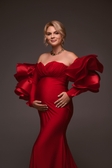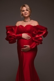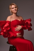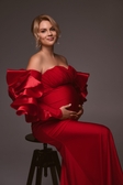Ефектна червона сукня з трикотажу — ідеальний вибір для студійної або pregnancy-фотосесії.М’яка еластична тканина чудово тягнеться й комфортно сидить навіть на майбутніх мамах на будь-якому терміні.